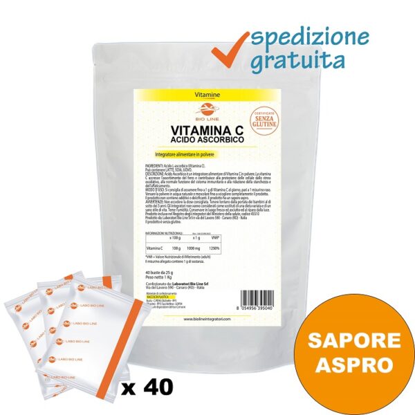 Acido Ascorbico – Integratore in polvere in bustine di vitamina C ad azione antiossidante – Sostanza pura senza eccipienti