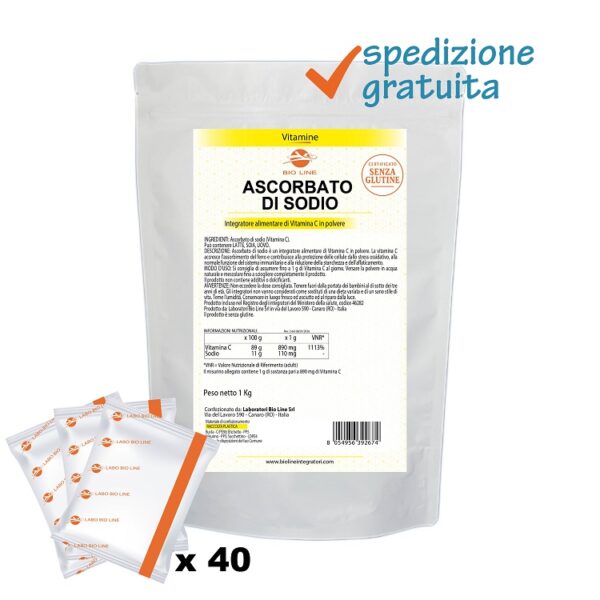 Ascorbato di Sodio – Integratore in polvere in busta di vitamina C – Utile per l’azione antiossidante – Sostanza pura senza eccipienti