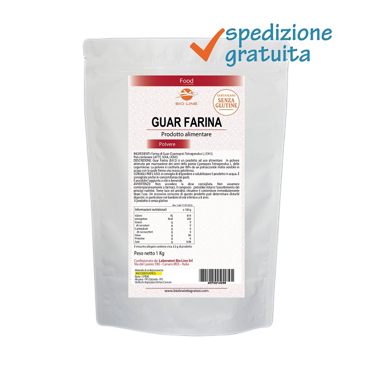 | Guar Farina - Prodotto alimentare in polvere (E412) - Senza glutine - Sostanza pura senza eccipienti - Busta da 1 Kg con misurino | 31/10/2027 |