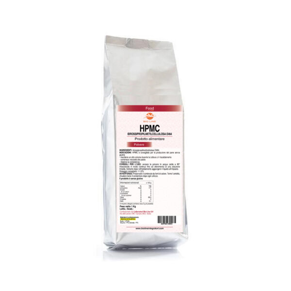 HPMC Idrossipropilmetilcellulosa - Prodotto alimentare in polvere (E464) - Senza glutine - Sostanza pura senza eccipienti - Busta da 1 Kg con misurino31/10/2026