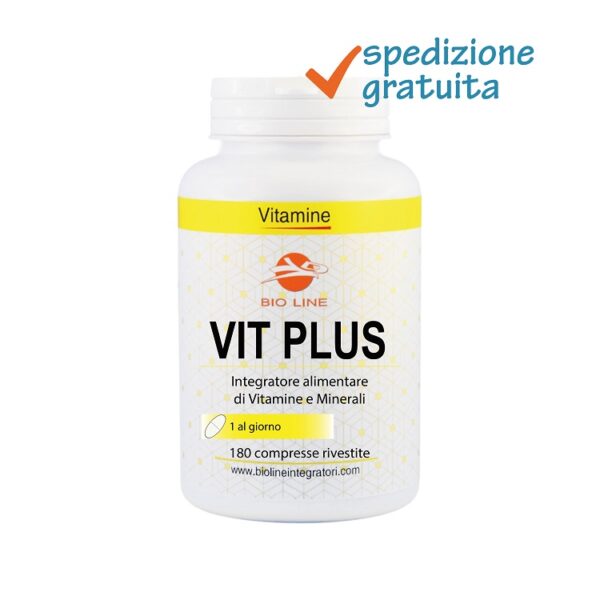 Vit Plus è un integratore alimentare di vitamine ad alto dosaggio e minerali, utile in presenza di carenze nutrizionali o di aumentato fabbisogno di tali nutrienti (attività sportiva, stress ecc.). È formulato in compresse rivestite, per preservare più a lungo i principi attivi dall’umidità e dall’ossidazione.