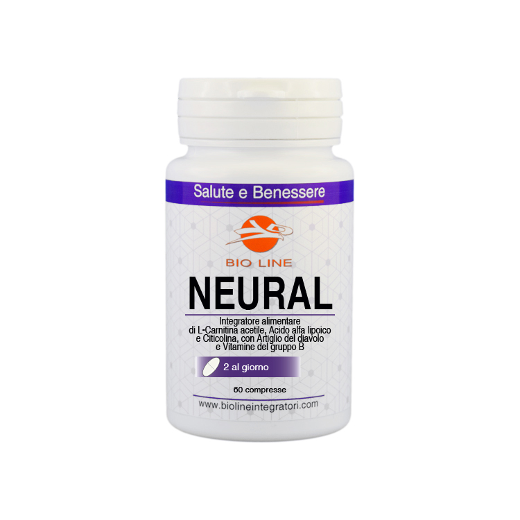 Neural è un integratore in compresse a base di L-Carnitina acetile, Acido alfa lipoico e Citicolina, con Artiglio del diavolo utile per la funzione articolare e le Vitamine B1, B2, B6, B12 e Niacina che contribuiscono al normale funzionamento del sistema nervoso.