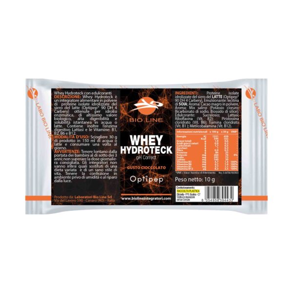 Whey Hydroteck pH Correct - Integratore in polvere di proteine idrolizzate del latte (Optipep®) con minerali e vitamine - Rapidissima assimilazione - 1 Bustina da 10 g - Gusto Cioccolato31/01/2027
